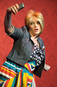 Des portes qui claquent et qui s’abattent découvrant des décors, bar, salon cuisine (Laure Satgé) des costumes hilarants moulés sur des silhouettes gonflées façon Botero ou bonhomme Michelin où les mollets sont des jambons et les ventres des outres à huile. Ils jouent, ils chantent, ils bouffonnent : Paul-Alexandre Dubois, baryton rompu à tous les répertoires du baroque au contemporain pointu fait la paire de pochtrons avec le jeune ténor Artavazd Sargsyan en Mathurin et Lucas, Edwige Bourdy figure familière des Shadocks, l’heureuse fortune de la Péniche, a endossé in extrémis les bourrelets de Mathurine et lui prête en version clown son beau timbre de soprano, sa verve et son jeu déjanté, Guillaume Andrieux fait le joli cœur tandis qu’Estelle Béréau, blondinette délicieuse, écouteurs vissés aux oreilles, yeux et doigts scotchés sur son i-phone, joue les ados rappeuses avec une évidence confondante.
