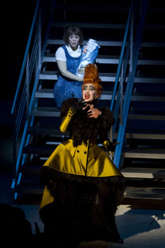 En costumes extravagants un brin Disneyland, un brin carnaval, les chanteurs se font acteurs, danseurs et même parfois acrobates sous la férule fine et inventive de Lira Bartov, jeune femme metteur en scène suédoise d’origine russe, directrice du Folkoperan de Stockholm l’une des maisons d’opéra de la capitale suédoise. Une découverte, un tempérament qui a su communiquer son énergie et sa fantaisie à la douzaine d’interprètes qui se partagent une trentaine de personnages et qui réussissent à maîtriser cette musique en mosaïque dont la plupart d’entre eux ne sont pas spécialistes : belle ligne de chant du baryton allemand Dietrich Henschel en irrésistible chapelier barjot, la soprano américaine Cyndia Sieden en chat roucouleur, Andrew Watts, ténor et contre ténor anglais en lapin échevelé, la wagnérienne Karan Armstrong toujours en forme et en reine cœur montée sur les ressorts de sa méchanceté, l’excellent ténor belge Guy de Mey, tour à tour souris pétillante et loir délicieusement ahuri. On pourrait les citer tous.