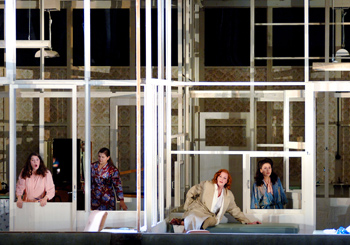 Ariane et Barbe Bleue de Paul Dukas, livret de Maurice Maeterlinck, orchestre et chœurs de l’Opéra National de Paris, direction Sylvain Cambreling, mise en scène, décors et costumes Anna Viebrock, lumières David Finn, Vidéo Till Exit. Avec Deborah Polaski, Willard White, Julia Juon, Diana Axentii, Iwoba Sabotka, Hélène Guilmette, Jaël Azzaretti, Geneviève Motard, Christian Tréguier, Gzregorz Stakiewicz, Yuri Kissin –