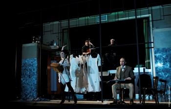 Café Allais-Opéra Fumiste par la Compagnie Lyrique Générale de France. Textes Alphonse Allais (+ Pierre Méchanick et Gilles Bugeaud), musique Nicolas Ducloux, mise en scène Pierre Méchanick, costumes Elisabeth de Sauverzac, scénographie et lumières Thibaut Frack. Avec Edwige Bourdy, Gilles Bugeaud, Pierre Méchanick et Nicolas Ducloux au piano .