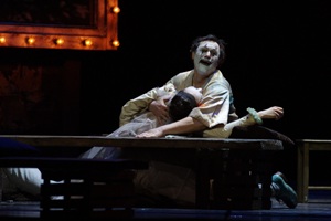 Après les tristes mises en scène signées Giancarlo del Monaco dans cette même salle de l’Opéra Bastille – Andrea Chénier et Francesca di Rimini : voir WT des 12 décembre 2009 et 7 février 2011 – on pouvait craindre le pire au rayon des ringardises labellisées. Surprise ! Ce n’est pas le cas. Grâce aux décors, sans originalité fracassante mais aussi sans mauvais goût, de Johannes Leiacker, grâce à la direction musicale colorée de Daniel Oren, grâce à une distribution de bonne tenue où brille l’incroyable fougue de Vladimir Galouzine, Pagliacci meurtri d’amour qui fait monter les larmes aux yeux.