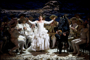 Don Quichotte de Jules Massenet, livret de Henri Cain d’après Miguel de Cervantès, orchestre symphonique et chœurs de La Monnaie de Bruxelles, direction Marc Minkowski (en alternance avec Nicholas Jenkins), mise en scène et costumes Laurent Pelly, décors Barbara de Limbourg, lumières Joël Adam. Avec José Van Dam (en alternance avec Vincent Le Texier) Silvia tro Santafé (en alternance avec Jennifer Larmore), Werner Van Mechelen (en alternance avec Lionel Lhote) Julie Mossay, Camille Merckx, Gijs Van der Linden, Vincent Delhomme, Bernard Villiers.
