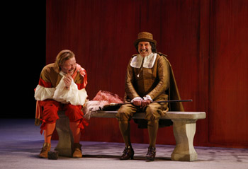 En revanche, Daniel Auteuil n’est pas là où on l’attendait. Peut-être trop dans le souvenir de Scapin et trop dans le parti pris du metteur en scène de jouer à fond la farce comme révélateur de la critique et de son actualité incontestable. Le comédien fait cavalier seul et bascule dans le comique facile, avec clins d’œil appuyés au public et mimiques à la de Funès (grand acteur par ailleurs) auxquels il semble ne pas adhérer vraiment. C’est dommage car il est clair qu’il a l’étoffe pour investir en profondeur ce rôle complexe, ici par trop simplifié.