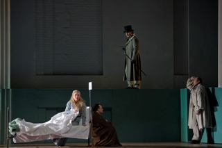 La Dame de Pique de Piotr Ilyitch Tchaïkovski, livret de Modeste Tchaïkovski d’après Alexandre Pouchkine, orchestre et chœur de l’Opéra National de Paris, direction Dmitri Jurowski, chef de chœur Alessandro di Stefano, mise en scène Lev Dodin, décors David Borovsky, costumes Chloé Obolenski, lumières Jean Kalman, chorégraphie Yuri Vasilkov.. Avec Vladimir Galouzine, Olga Guryakova, Larissa Diadkova, Ludovic Tézier, Evgeny Nikitin, Martin Mühle, Balint Szabo, Varduhi Abrahamyan, Nona Javakhidze .