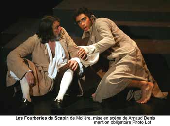 Les Fourberies de Scapin, comédie de Molière, mise en scène de Arnaud Denis, avec les comédiens Jean-Pierre Leroux, Arnaud Denis, Bertrand Métraux, Jonathan Bizet, Géraldine Azouélos, Elisabeth Ventura, Stéphane Peyran, Alexandre Guansé, Sébastien Tonnet.