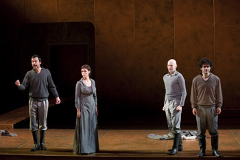 Les Justes d’Albert Camus, mise en scène Stanislas Nordey. Collaboratrice artistique : Claire Ingrid Cotteanceau. Scénographie : Emmanuel Clolus. Lumières : Stéphanie Daniel. Costumes : Raoul Fernandez. Son : Michel : Zürcher. Distribution : Emmanuelle Béart, Vincent Dissez, Raoul Fernandez, Damien Gabriac, Frédéric Leidgens, Wajdi Mouawad, Véronique Nordey, Laurent Sauvage. Théâtre National de La Colline jusqu’au 24/04/2010 à 20h30 (Mardi à 19h30, Dimanche à 15h30). Téléphone : 01 44 62 52 52.Durée : 2h30.