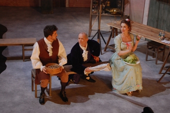 Depuis quelques saisons elle y glisse des œuvres musicales. La Traviata de Verdi fut le sujet de sa première mise en scène lyrique signée à Cergy Pontoise au printemps 2005 (webthea du 19 mai 2005). Deux ans plus tard elle inscrivait pour la première fois un opéra dans son propre théâtre : Il Matrimonio Segreto/Le Mariage secret de Cimarosa y trouva ses marques (webthea du 13 mars 2007) et fut joué en continu, comme une pièce de théâtre, durant plus d’un mois. La voilà qui récidive sur le même principe – la production restera à l’affiche jusqu’au 26 mars - avec Lo Speziale de Haydn, une œuvre pratiquement jamais jouée car partiellement détruite par un incendie.