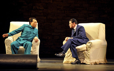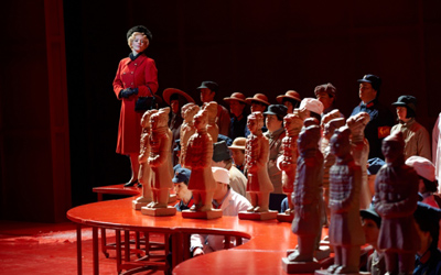 Au Châtelet toujours, Jean-Luc Choplin son actuel directeur qui adore juxtaposer les styles les plus divers de la vie musicale a eu la très bonne intuition de remettre ce petit monument à l’affiche en en confiant cette fois la réalisation à un metteur en scène chinois. Succéder au remuant Sellars dont l’hyperréalisme pince sans rire a laissé des empreintes dans les mémoires et les annales, constituait un défi que Chen Shi-Zheng, citoyen chinois de New York, acteur, chanteur, chorégraphe et metteur en scène relève en panaché de couleurs. Si le statisme du premier acte – l’arrivée des époux Nixon flanqués du secrétaire d’Etat Henry Kissinger à Pékin, les rencontres et présentations, Zhou Enlai, Mao, le banquet, les discours et palabres de « bienvenue », sur ces musiques à variations immobiles engendre un certain ennui, les deuxième et troisième actes, - la visite de la ville, l’arrivée de madame Mao, le ballet révolutionnaire – partent en fusées de mouvements, de couleurs et. même de mélancolie.