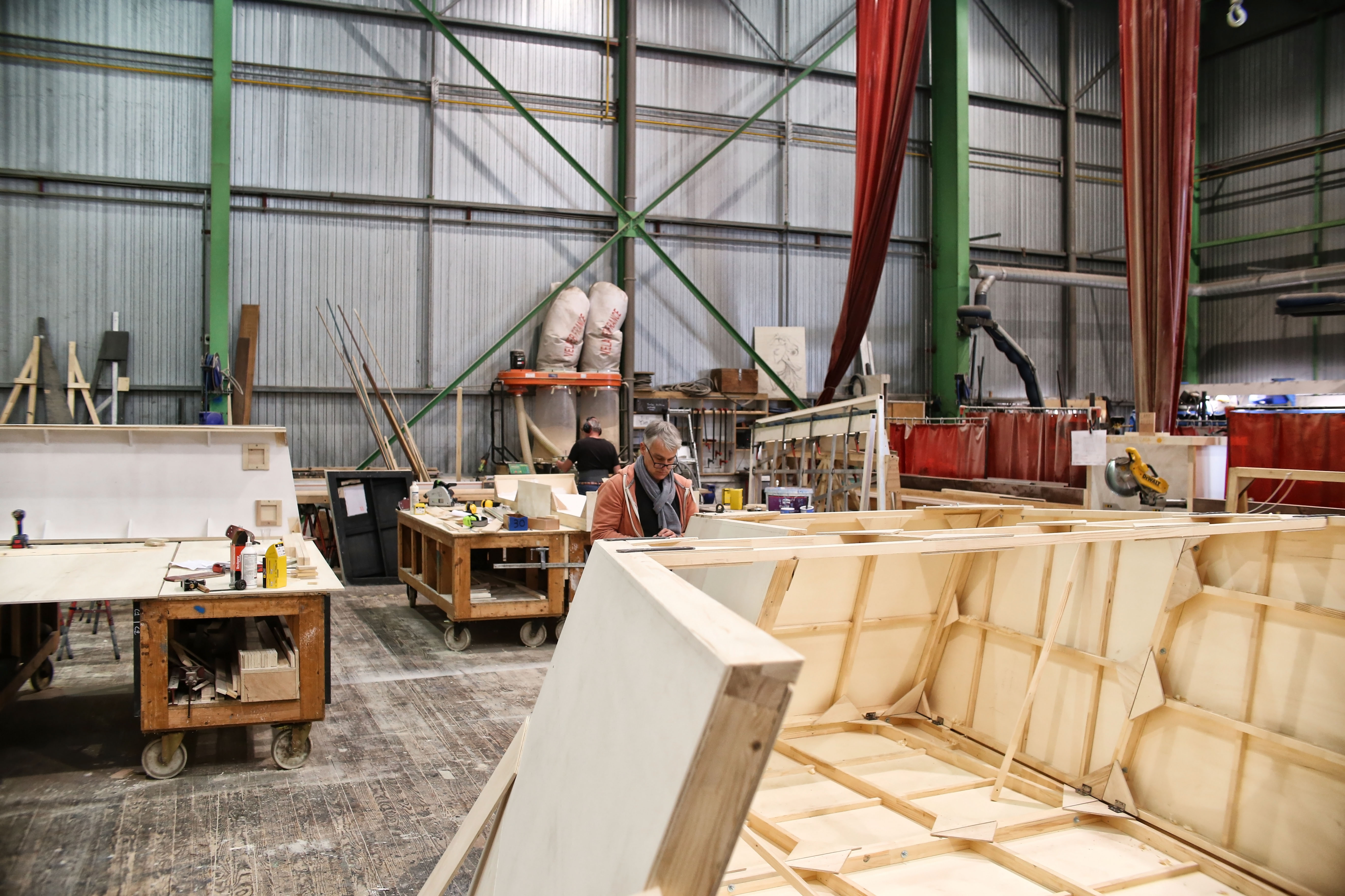 « Après un essai de deux mois, je suis entrée et je n’en suis jamais repartie », explique Alison Bigeard en déroulant les étapes de sa vie professionnelle. Britannique d’origine, elle devient professeur d’anglais en France, avant de bifurquer à Tours vers une formation de peintre. Puis elle grimpe une à une les marches de l’atelier d’Angers Nantes Opéra, de la peinture aux décors. Aujourd’hui seule permanente, elle s’entoure d’intermittents au gré des besoins des productions, selon les compétences et les disponibilités de chacun, tout en réfutant le titre de « cheffe » : « Je n’aime pas trop ce terme, je fais de la coordination, avec les uns et les autres. » Et il en faut tant sont divers les métiers nécessaires à la réalisation d’un opéra. La Britannique égrène, admirative, les spécialités de ses collègues : construction, peinture, sculpture, électricité, dessin, accessoires, tapisserie, serrurerie…