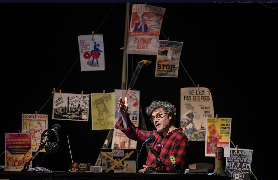 Le spectacle est en même temps le récit de sa préparation et sa réalisation, avec pour fil rouge les emblématiques radios pirates, puis dites "libres", vecteurs médiatiques d’abord clandestins de transmission et de militantisme.