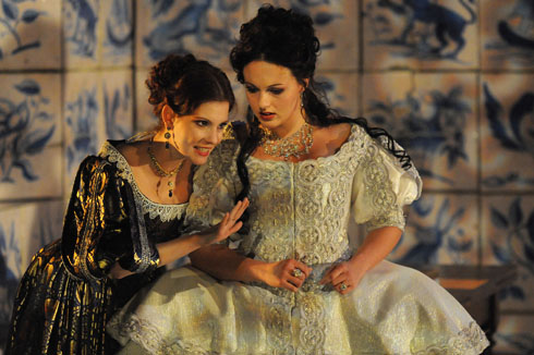 Le sens, la force, l’éclat de l’oeuvre sont portés par la belle mise en scène de Schiaretti, qui compose avec brio ce feuilleton grandiose. La distribution a de la classe : Robin Renucci, en don Salluste, pourrait être plus machiavélique, mais il est efficacement méconnaissable. Jérôme Kircher est un Don César tout à fait inattendu, doux, jovial, lunaire, bourlingueur portant avec lui la fantaisie des contrées visitées. Roland Monod (Don Guritan), Isabelle Sadoyan (en duègne et en religieuse) et Clara Simpson (en duchesse) ont une présence évidente. Mais on peut être réservé sur les deux jeunes acteurs jouant les rôles centraux d’amants : en Ruy Blas, Nicolas Gonzalès est encore un peu frêle ; trop véhément parfois, trop délicat en d’autres instants, il semble mal équilibrer les moments de force et de douceur. Mais il porte ce long et difficile rôle avec panache. Incarnant la reine, Juliette Rizoud est sans doute victime d’un de ses costumes qui en fait, à certains moments, une poupée blanche et ronde. Elle n’en déploie pas moins une flamme attachante. Le parti pris de Schiaretti d’avoir fait de ce couple des personnages presque adolescents déroutera. Il ajoute du charme mais fait trop de ces protagonistes des gamins innocents.