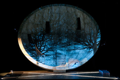 A Lyon tous les bonheurs au rendez-vous : loin des inutiles illustrations filmées du vidéaste Bill Viola à l’Opéra de Paris en 2005, très proche en revanche de la poésie visionnaire d’Olivier Py qui en fit à Genève et à Angers une inoubliable mise en images et en émotions. (webthea des 14 avril 2005 et 13 mai 2009), Alex Ollé et Alfons Florès son décorateur ont inventé trois espaces à la fois mouvants et immobiles qui localisent et habitent les trois actes.