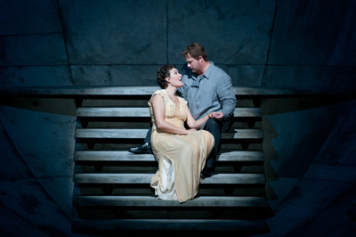 Kirill Petrenko, star en devenir, futur directeur musical de l’Opéra de Münich et maestro désigné pour le prochain Ring de Bayreuth en 2013, assure une direction fougueuse et tendre. C’est une version quasi chambriste car la taille de la fosse ne peut accueillir les grands effectifs. Mais tous les pastels, tous les tons et les tonalités d’un arc en ciel sonore en jaillissent jusque dans les silences. Et toujours en accord avec les voix, jamais couvertes.
