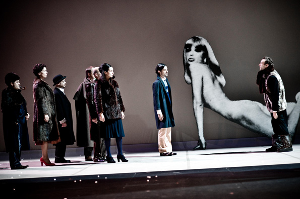 Yakich et Poupatchée de Hanokh Levin, mise en scène Frédéric Bélier-Garcia, traduction Laurence Sendrowicz, scénographie Sophie Perez assistée de Xavier Boussiron, costumes Corinne Petitpierre et Sophie Perez, lumières Jean-Luc Chanonat, musique Bernard Valléry, chansons Reinhardt Wagner.Avec Evelyne El Garby Klai, Denis Fouquereau, Jan Hammenecker, Ophélia Kolb, Alexis Lameda Waksman, Ged Marlon, David Migeot, Christine Pignet, Afra Waldhör.