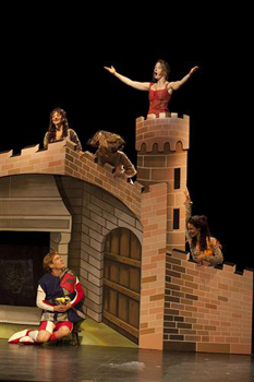 Le carton pâte plan-plan du décor médiéval démasque peu à peu ses tours de passe-passe, s’ouvre sur des ballets d’ombres chinoises, accueille une désopilante cavalerie miniature, prend feu… Les costumes d’Elisabeth de Sauverzac mêle comme d’habitude la folie douce à la douceur foldingue et met cette fois coiffes et coiffures en délire poétique. Philippe Nicolle, l’homme d’ailleurs, le créateur des 26.000 Couverts, entraîne tout son petit monde (pêle-mêle musiciens, acteurs, chanteurs, chef d’orchestre) dans une ronde de bouffonneries totalement marteau, fait virer un tousseur, organise un faux entracte, et libère les zygomatiques des plus grincheux.