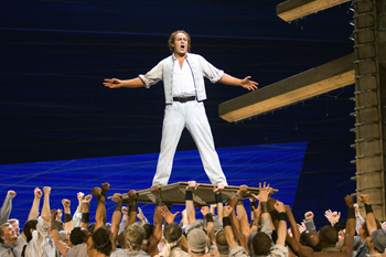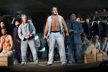 Billy Budd de Benjamin Britten, livret de E.M.Forster et E.Crozier d’après la nouvelle de Herman Melville. Orchestre et chœur de l’Opéra National de Paris, direction Jeffrey Tate et Patrick Marie Aubert, mise en scène Francesca Zambello, décors et costumes Alison Chitty, lumières Alan Burrett. Avec Lucas Meachem, Kim Begley, Gidon Saks, Micheal Druiett, Paul Gay, Scott Wilde, Andreas Jäggi, Igor Gnidii, Yuri Kissin, François Piolino, John Easterlin, Franck Leguérinel, Chae Wook Lim, Jian-Hong Zhao, Paul Cremazy, Vladimir Kapshuk, Guillaume Petitot-Bellavène, David Fernandez Gainza, Christian Rodrigue Moungoungou, Andrea Nelli, Robert Catania, Lucio Prete ; Shin Jae Kim.
