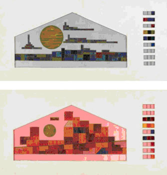 Photo 2 : Cartons peints pour les soies de La Nuit des rois de Shakespeare (1982). Cartoucherie de Vincennes