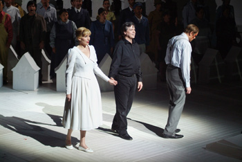 Robert Dean Smith a interprété le rôle de Walter von Stolzing, le poète inconnu à Nuremberg, avec grande générosité, sans se ménager, dans la ligne de chant traditionnelle, et donc sans concessions italianisantes dont les licéistes sont si friands. Si Albert Dohmen a reçu des applaudissements justifiés pour sa grande interprétation de Hans Sachs, pleine de fougue et de vérité, le public a été agréablement surpris par l’interprétation rigoureuse, puissante et lyrique de Véronique Gens, - Eva inespérée que le Liceu connaissait déjà par sa Dona Elvira mozartienne-, mais surtout, par la création vocalement parfaite de Bo Skobus dramatiquement au sommet de son art, du personnage de Sixtus Beckmesser.