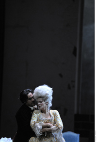 La mise en scène de Frédéric Bélier-Garcia, ni plate comme celle de Jérôme Savary (voir : http://www.webthea.com/actualites/?Le-Barbier-de-Seville,962), ni pétillante comme celle de Coline Serreau (voir : http://www.webthea.com/actualites/?Le-Barbier-de-Seville-de-Rossini,497) est vive et enlevée : le premier acte, rempli de gags très amusants, a éloigné quelque peu le public de l’action principale, alors que le deuxième, beaucoup plus sobre, a permis de suivre l’évolution de l’action et la qualité du chant. Bien sûr certaines scènes ont surpris, telle l’opération pratiquée par le « chirurgien » Bartolo qui a tourné au Grand Guignol, et, côté décor, dans la même veine, les statues de Jacques Gabel qui semblent issues de l’exposition « Our body, à corps ouvert ».