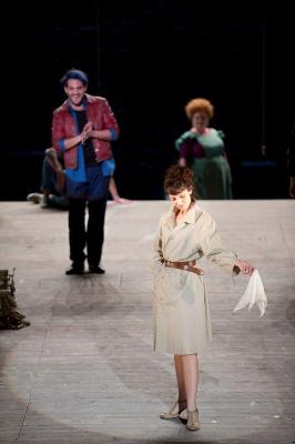 La mixture résultante a prouvé, si besoin était, que l’on peut présenter une œuvre ancienne en gommant des intentions originelles de l’auteur, en ne respectant pas forcément tous les sous-entendus de son époque –non négociables en leur temps-, sans pour autant y faire entrer, souvent au chausse-pied, des questions d’actualité, voire des parallèles qui rendraient éventuellement plus compréhensibles les messages d’antan. Jean-François Sivadier a mis entre parenthèse les différences de classe, l’autorité de la Famille, de l’Eglise et du Pouvoir, et pour notre grand bonheur a gardé seulement le côté jouissif de la situation complexe, loufoque, créée par le dramaturge français et le musicien de Pesaro. Un bol d’air frais à consommer sans modération.