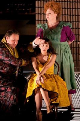 Vocalement impeccable –timbre viril, accent parfait, très à l’aise tout le long de la tessiture et lors des déclamations rapides- l’argentin encore en pleine ascension artistique, a fait preuve de qualités plus que suffisantes pour défendre le rôle du saltimbanque andalou, semblant dire au compositeur, avec respect mais aussi une pointe d’insolence : maestro me voilà ! Sa spontanéité communicative, sa générosité aussi, résultats d’un travail assidu, de longue haleine, ont tranquillisé le reste des chanteurs sur la scène et dès lors, par un effet d’entrainement ils ont tous donné le meilleur d’eux-mêmes pour jouer sur le registre de leur meneur de jeu. Eduarda Melo a campé une Rosine tranquille et joyeuse face au comportement absurde et brutal de son tuteur, comme si elle connaissait depuis le début le dénouement heureux de l’histoire. Taylor Staton, Almaviva a rivalisé de fougue et d’invention avec son coiffeur et improbable ami. Adam Palka –sans soutane- a bien réussi l’air de la calomnie, et Jennifer Rhys-Davies, bien discrète tout le long de la soirée, s’est fait applaudir après son unique intervention. Tiziano Bracci mérite une mention à part pour son interprétation de Bartolo, ici plus bête que méchant.