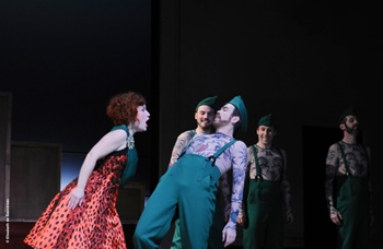 Les chorégraphies de Jean-Marc Hoolbecq transforment chanteurs et musiciens en danseurs acrobates, frétillants jusque dans le vide où Fritz/Rougier se trouve suspendu.