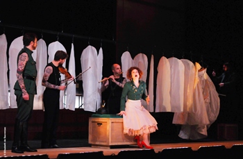 La Grande Duchesse d’après La Grande Duchesse de Gerolstein, musique de Jacques Offenbach, livret de Henri Meilhac et Ludovic Halévy. Compagnie Les Brigands, direction musicale Christophe Grapperon, orchestration Thibault Perrine, mise en scène Philippe Béziat, décors et lumières Thibaut Fack, costumes Elisabeth de Sauverzac, chorégraphie Jean-Marc Hoolbecq. Avec Isabelle Druet, François Rougier, Antoine Philippot, David Ghilardi, Flannan Obé, Olivier Hernandez, Emmanuelle Goizé, Olivier Naveau, Guillaume Paire. Et les musiciens Nicolas Ducloux, Samuel Nemtanu (en alternance avec Pablo Schatzman), Laurent Camatte, Annabelle Brey, Benjamin Hébert (en alternance avec Simon Drappier), Boris Grelier, François Miquel, Takénori Némoto (en alternance avec Pierre Rémondière) Eriko Minami (en alternance avec Guillaume Le Picard )