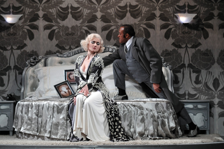 Au décor de Julia Hansen, sobre et élégant dans le style « art déco », Momme Hinrichs et Torge Møller ont apporté une superbe vidéo qui emprunte ses images au cinéma hollywoodien des années 20 et 30. Un trucage photographique nous a permis de voir Sébastien Droy dans d’amoureux tête-à-tête avec de grandes stars de l’époque comme Greta Garbo, Marlene Dietrich ou encore la « blonde platine » Jean Harlow.