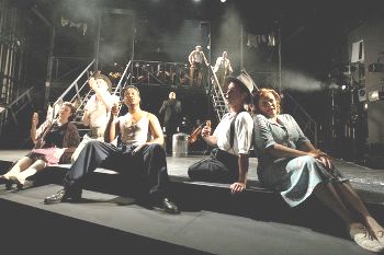 Mission non accomplie par le metteur en scène John Fulljames et le chef Tim Murray à la tête d’un orchestre Pasdeloup qui fait ce qu’il peut. Pourquoi l’avoir juché sur le plateau, scindé en deux groupes, en dessous et au-dessus de deux rampes d’escaliers qui font figure d’unique décor ? Rien d’autre que ces rampes et ces marches à la verticale pour suggérer le petit monde en désarroi de ces « scènes de rue » chez les pauvres de Manhattan où la vie hoquette entre espoir et désillusion, où la misère filtre à travers les ragots, où les passions s’exacerbent jusqu’au crime dans la moiteur de l’été. Alors que les amours, les passions, les jalousies, les dessous trop lisses d’un fait divers criminel devraient nous attendrir, malgré la présence, le jeu, le chant d’interprètes habités par le pittoresque de leurs personnages, malgré la réussite de quelques numéros dansés, on s’ennuie. Tristement.