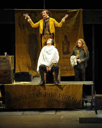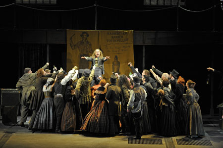 Sweeney Todd musique et lyrics de Stephen Sondheim, livret de Hugh Wheeler d’après la pièce de Christopher Bond. Ensemble Orchestral de Paris (*jusqu’au 7 mai puis Orchestre Pasdeloup jusqu’au 21) direction David Charles Abell, chœur du Châtelet direction Stephen Betteridge. Mise en scène Lee Blakeley, décors et costumes Tanya McCallin, chorégraphie Lorena Randi, lumières Rick Fisher. Avec Rod Gilfry (en alternance avec Franco Pomponi), Caroline O’Connor, Rebecca Bottone, Nicholas Garrett, Jonathan Best, John Graham-Hall, Rebecca de Pont Davies, David Curry, Pascal Charbonneau, Damian Thantrey .